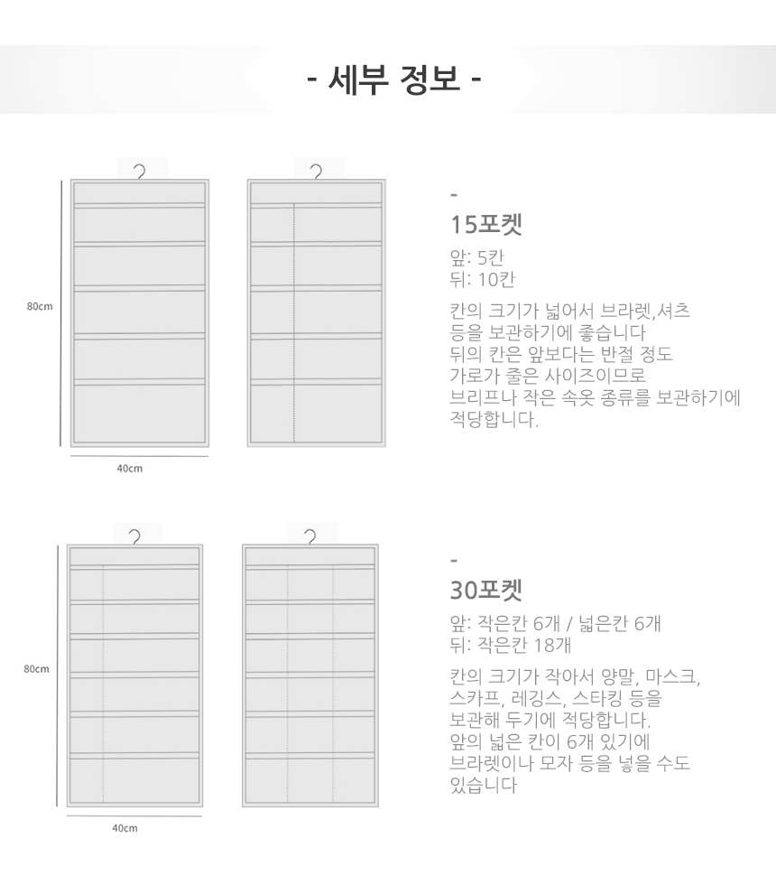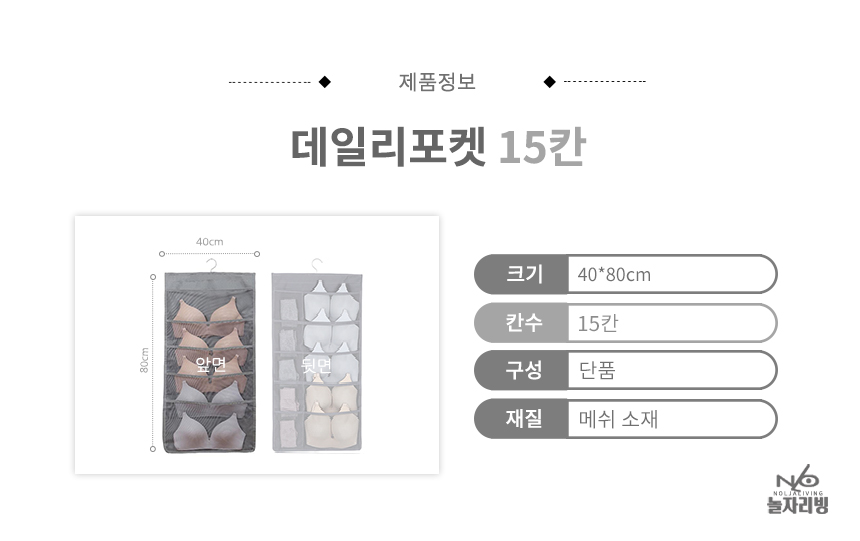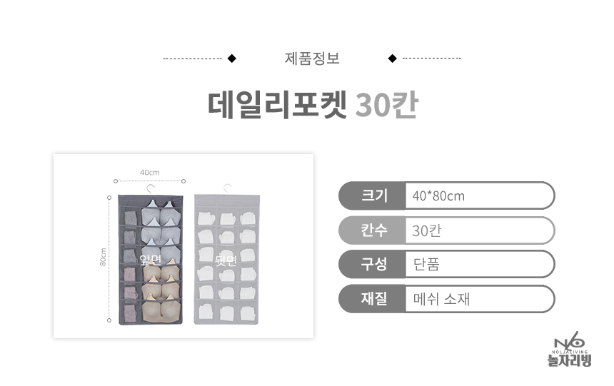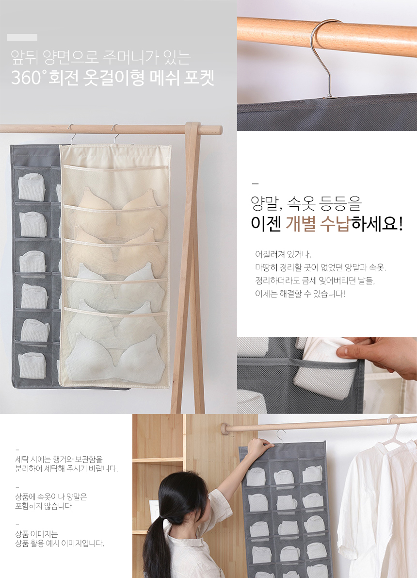 상품명:벽걸이 데일리 패브릭 옷장수납포켓 브래지어속옷보관