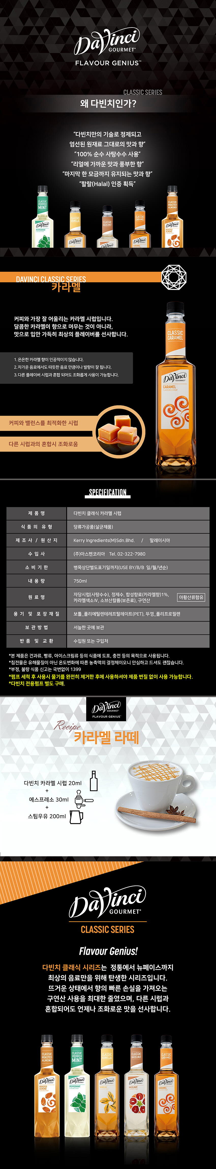 다빈치 카라멜 시럽 750ml 카페 커피시럽