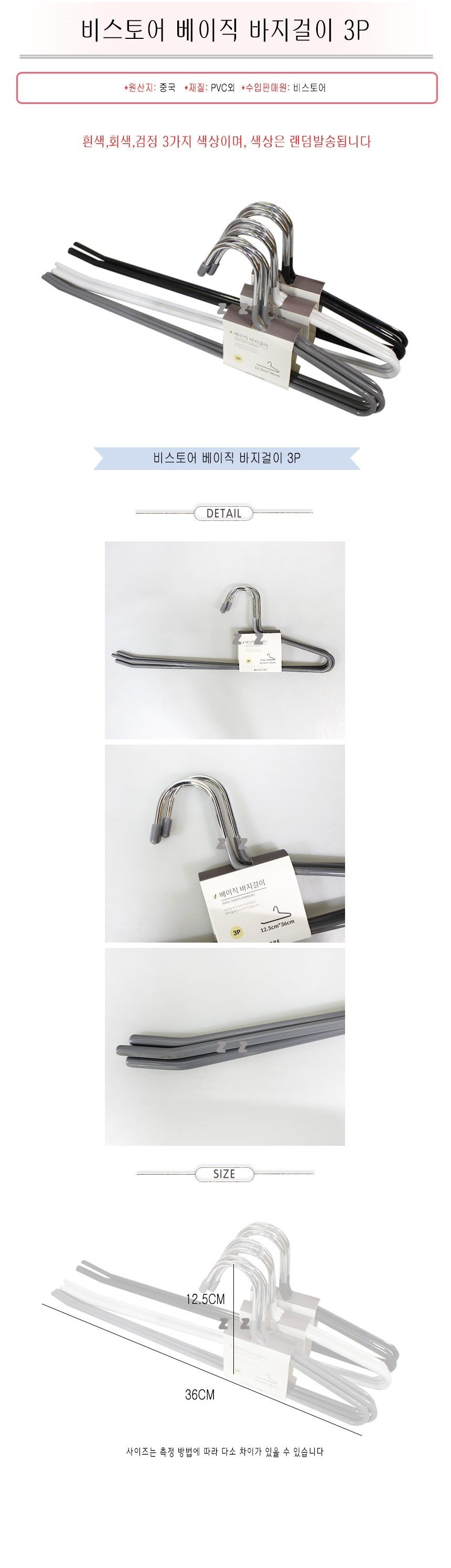 상품명:베이직 바지걸이 3p(36x12.5cm) 색상랜덤