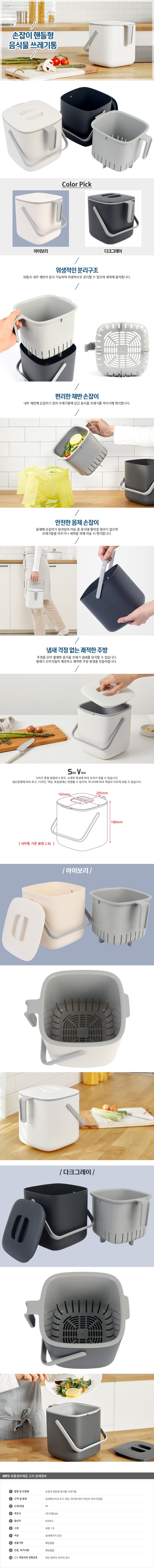 상품명:리템 음식물쓰레기통 2.6L 손잡이형 주방 쓰레기통