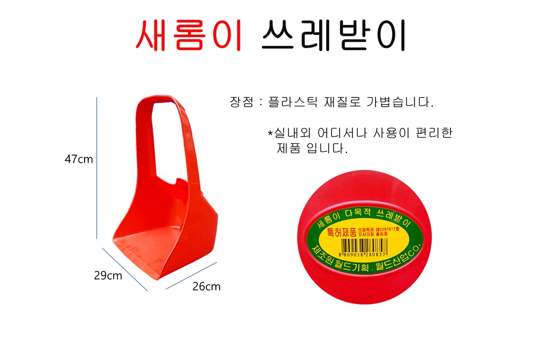 상품명:실내외용 새롬이 다목적 경량 쓰레받이 47cm 청소도구