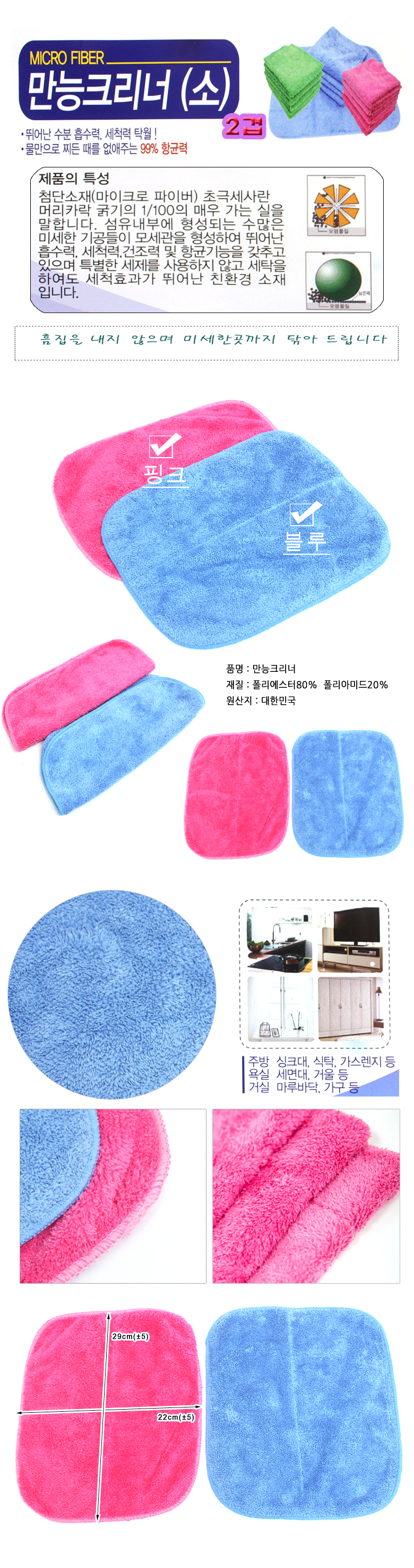 상품명:초극세사 손걸레 만능크리너 22x29cm 1장 청소용품