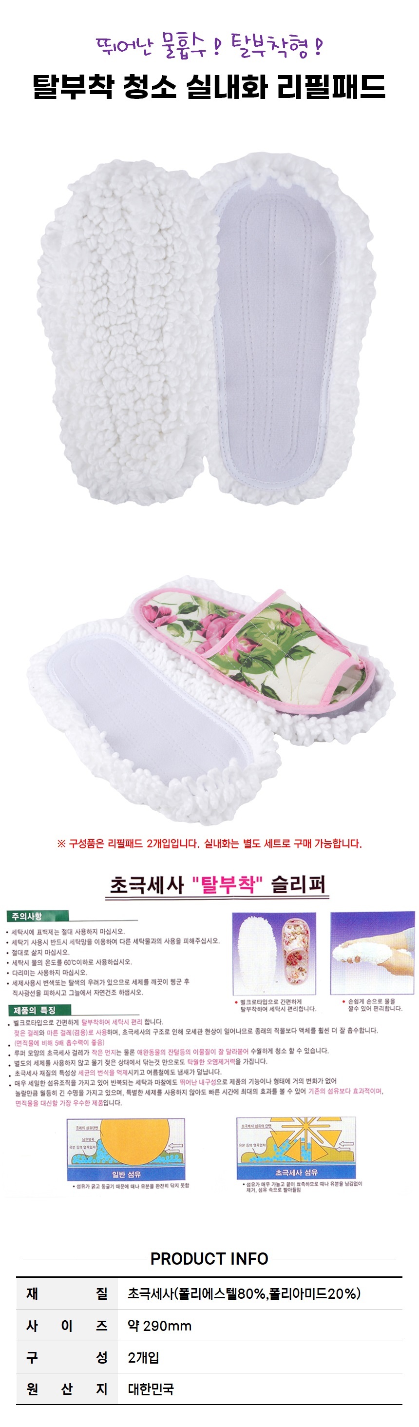 상품명:탈부착 가능 청소 극세사걸레 리필용 패드