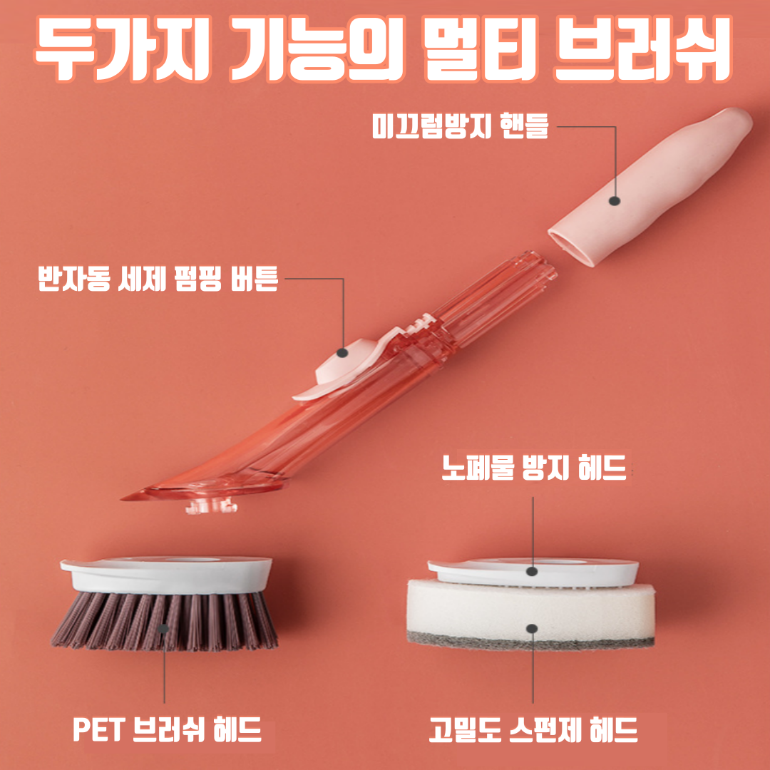 상품명:원터치 세제 반자동분사 청소 및 설거지 솔+스펀지 4p