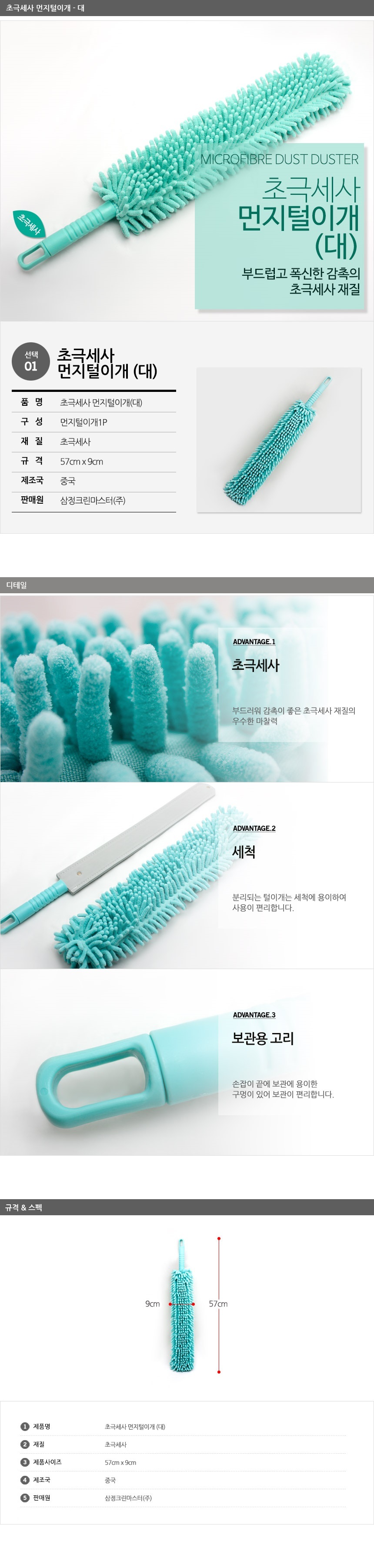상품명:초극세사 먼지떨이-대(약57x9cm) 털이개 분리세척가능