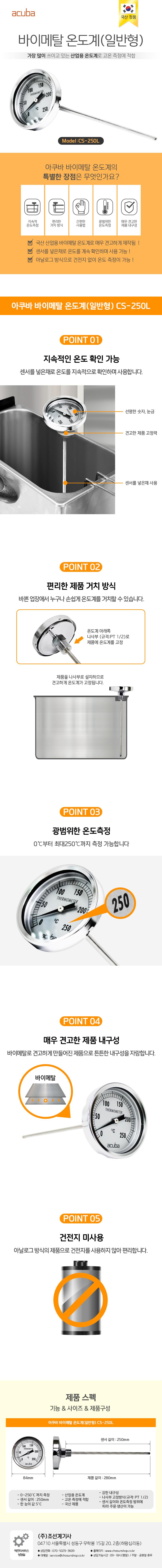 아쿠바 바이메탈 온도계(일반형) CS-250L
