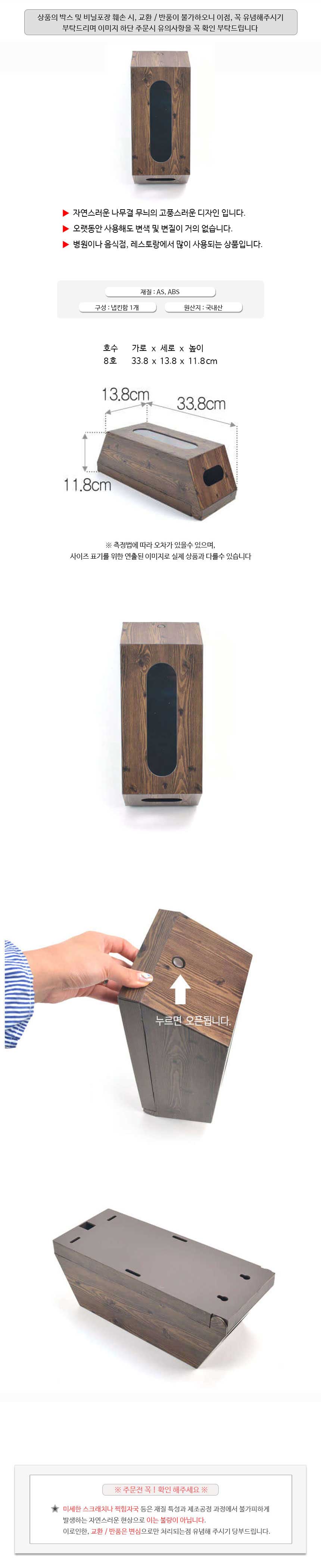 상품명:업소용 나무결 냅킨통 냅킨함 13.8x33.8x11.8cm 8호