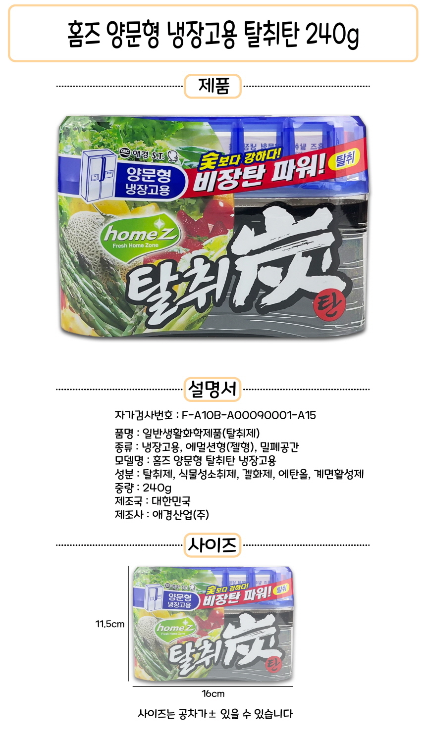 상품명:애경 홈즈 양문형 냉장고용 탈취탄 240g -O