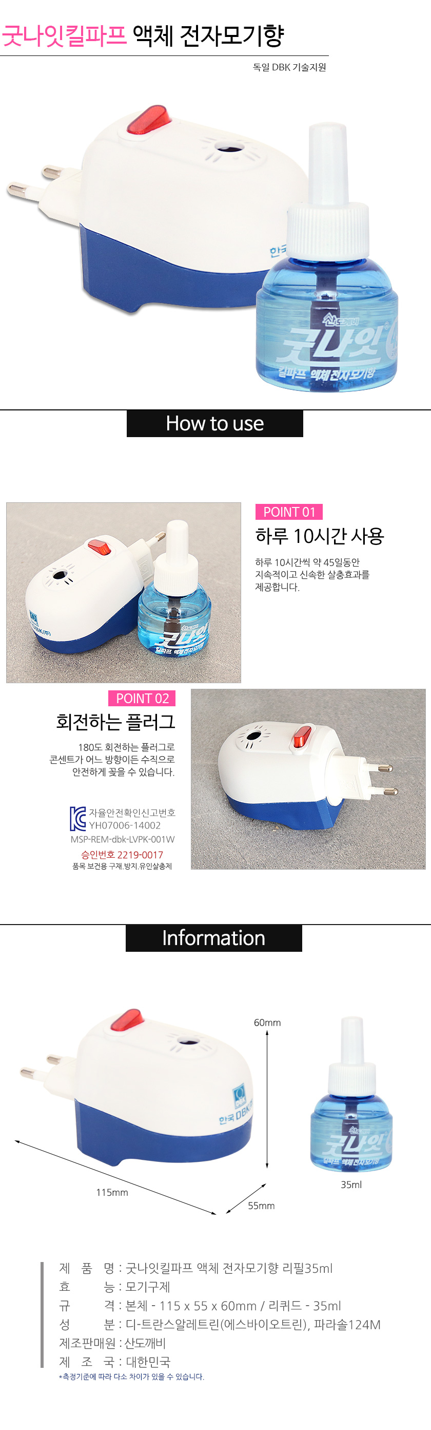 상품명:킬파프 액체 전자모기향 1P 모기 벌레 해충 모기약