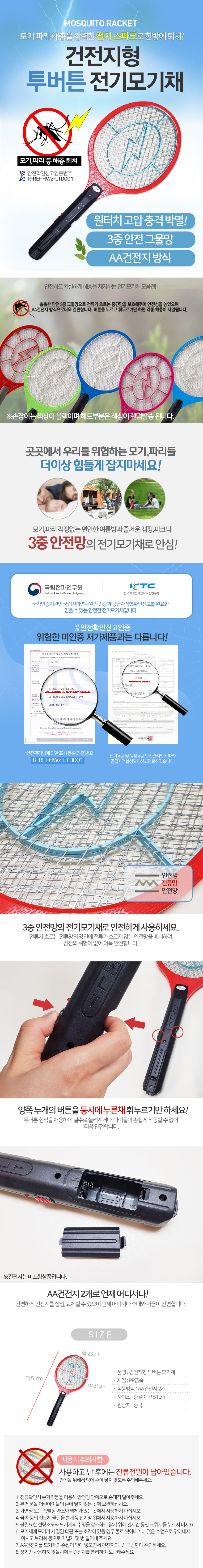 상품명:투버튼 전기 모기채 건전지형 파리채 벌레 해충제거