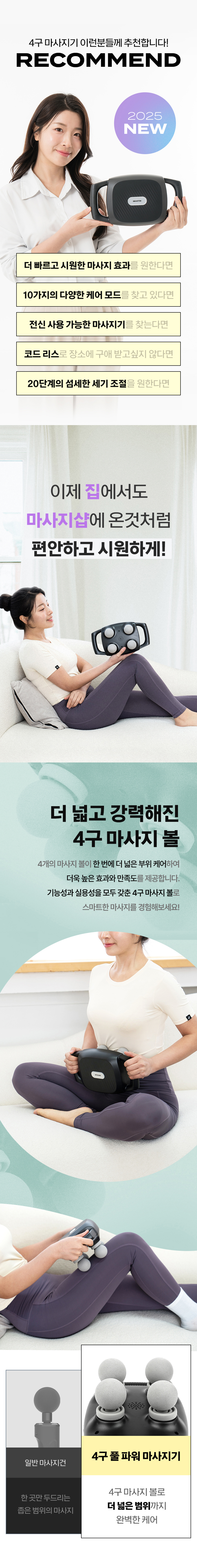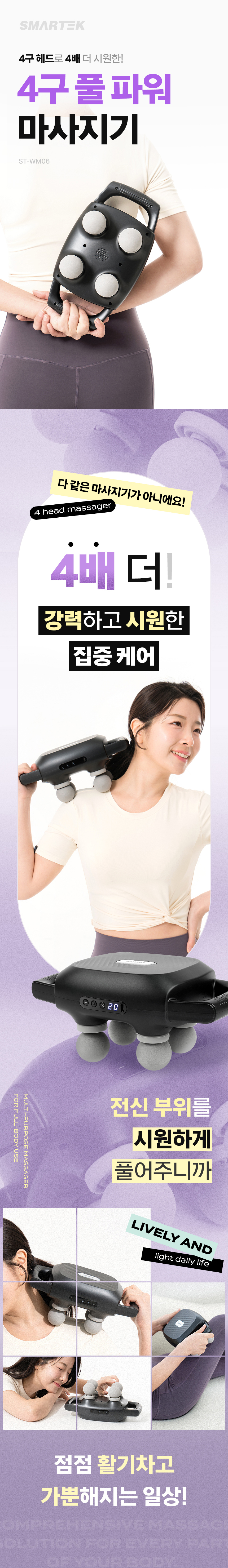 스마텍 무선 진동 목 어깨 허리 종아리 안마기 4구 핸디 전신 마사지기 ST-WM06