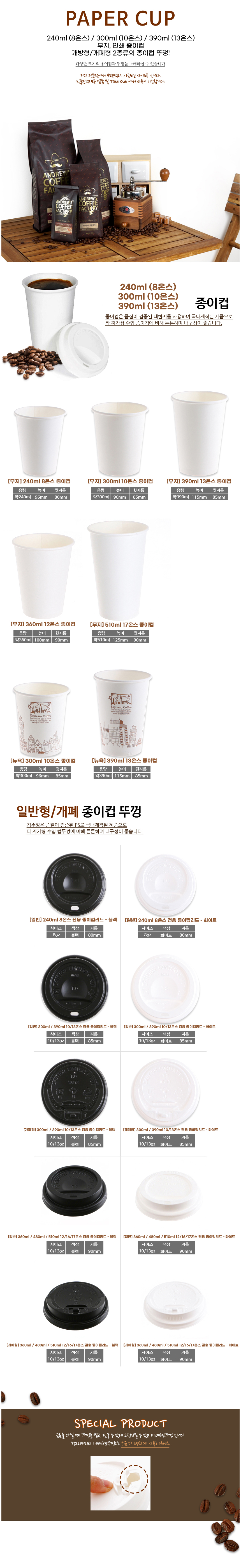 테이크아웃 8온스 종이컵 뚜껑 화이트 100개
