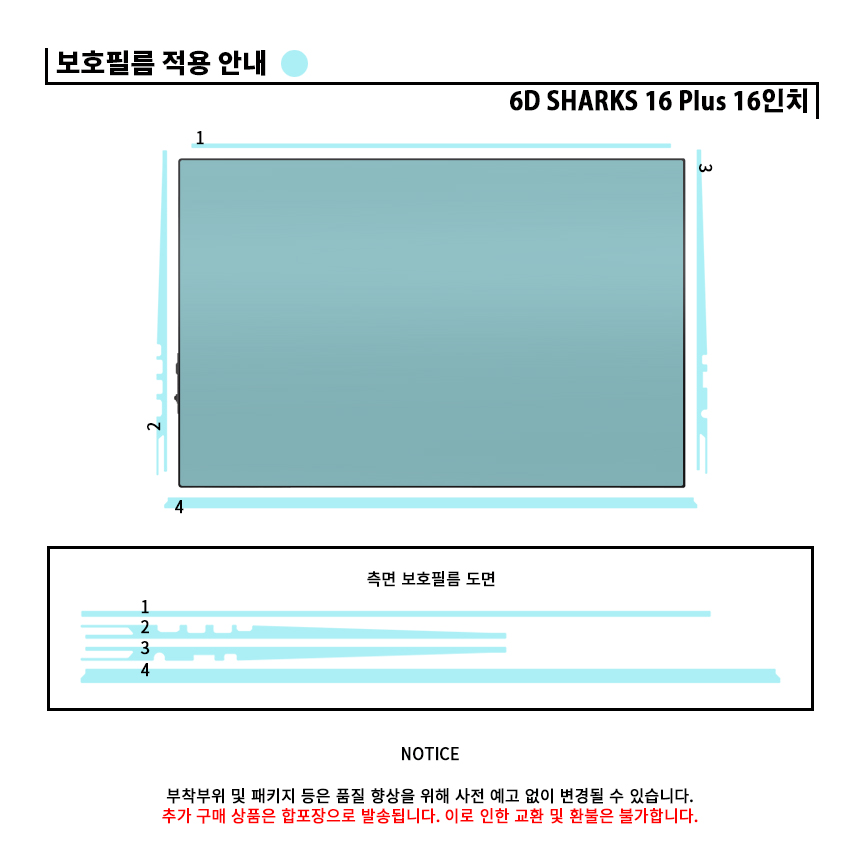 6D SHARK S16 Plus 16인치 측 후면 외부 보호필름 세트