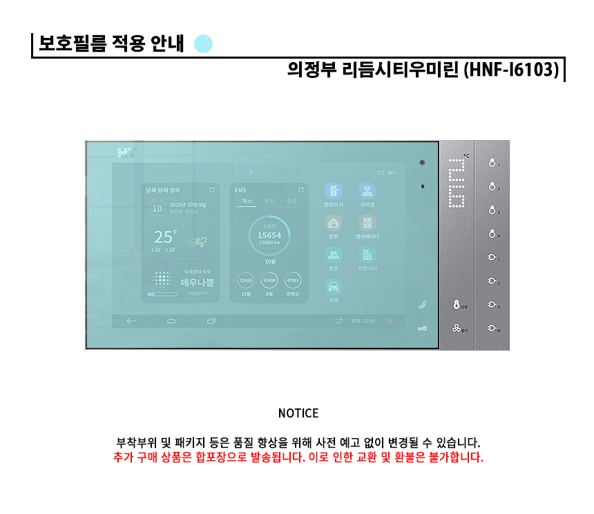 의정부 리듬시티우미린 HNF-I6103 아파트 월패드 액정보호필름