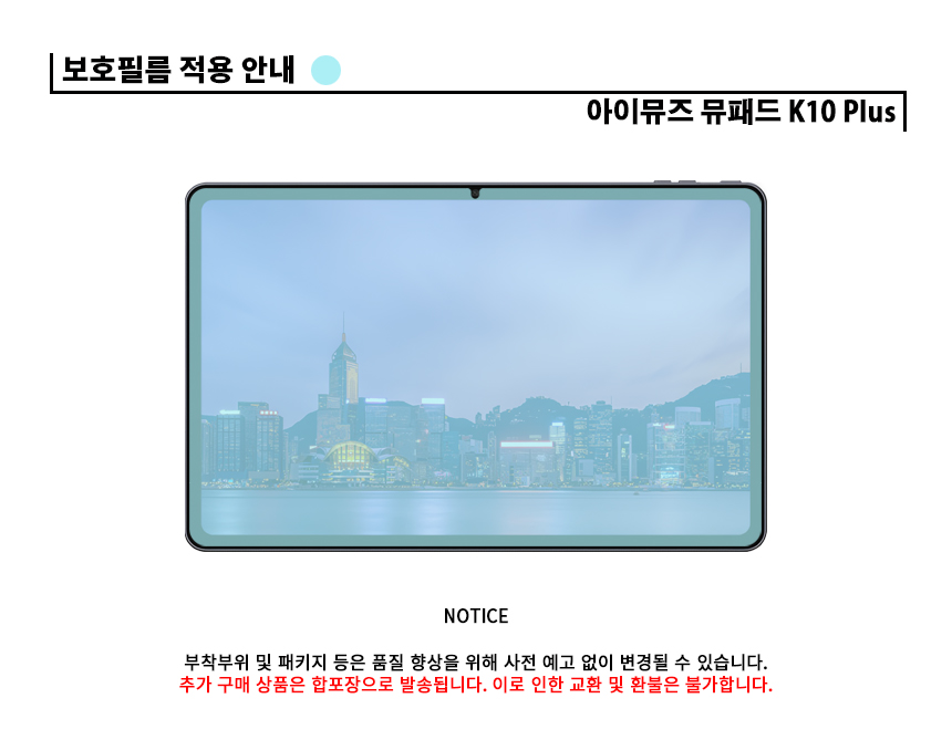 아이뮤즈 뮤패드 K10 플러스 퓨어 저반사 지문방지 액정보호필름