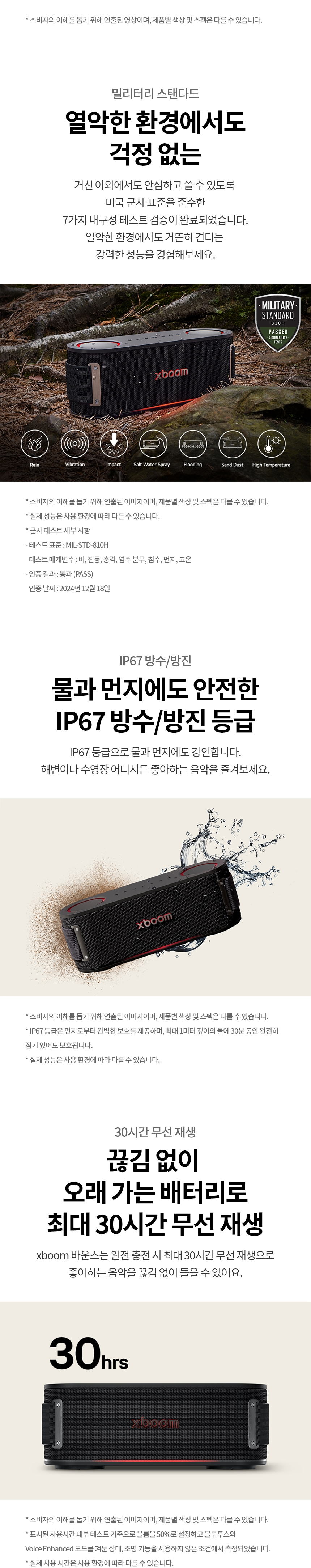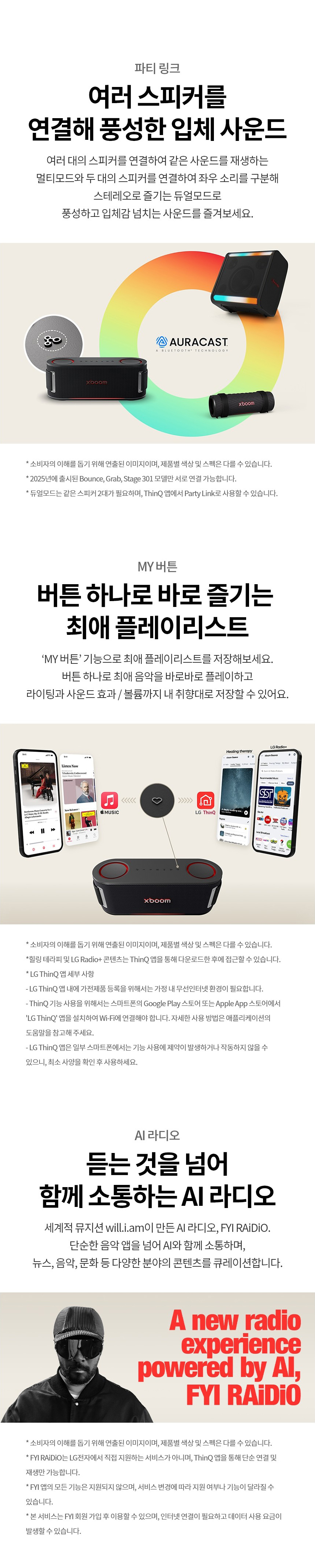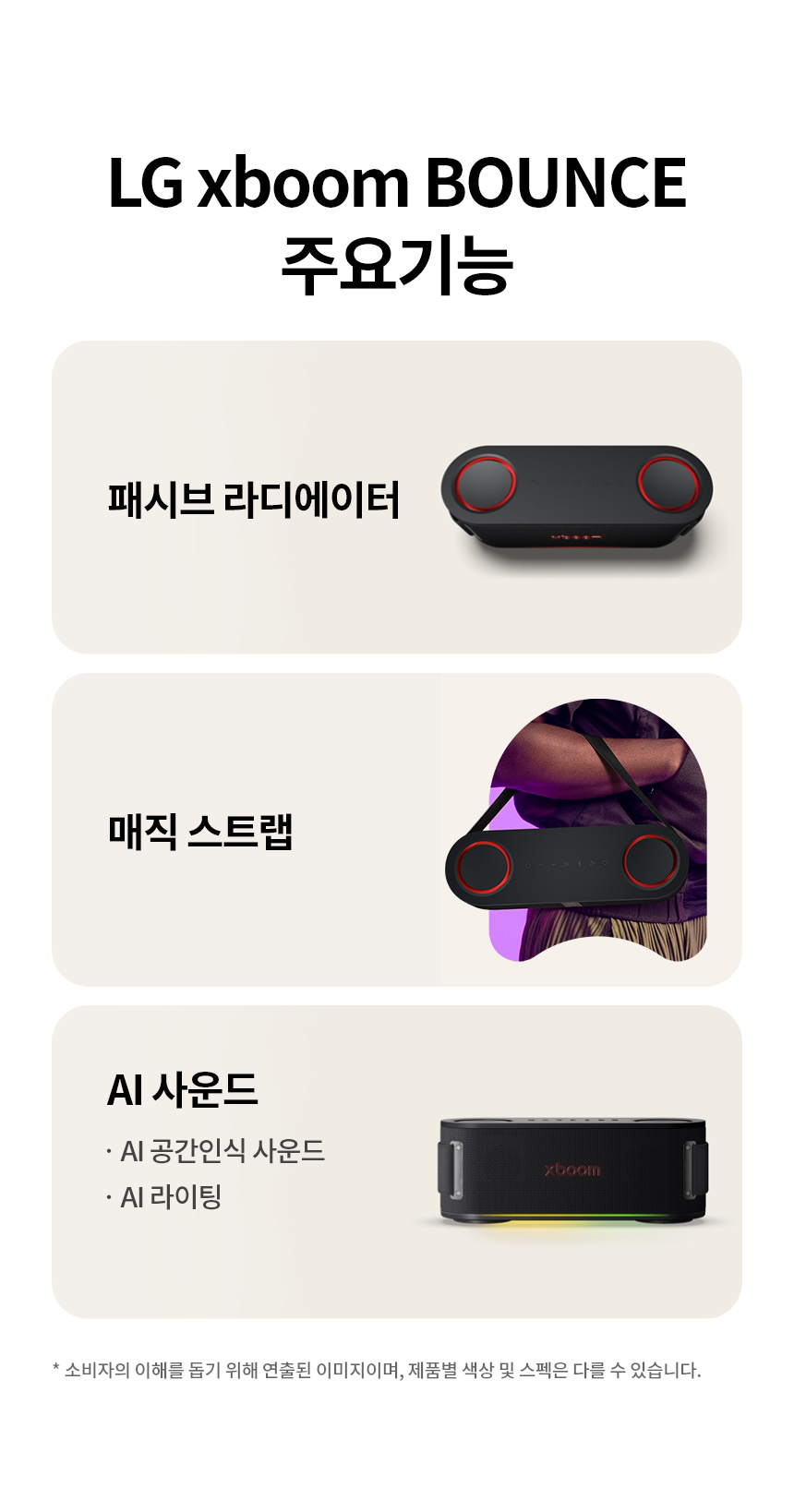 홈 스마트폰/태블릿/디지털 음향기기 스피커 LG xboom BOUNCE 블루투스 스피커 Tuned by will.i.am 상품번호 B0589661 11,700원 삼성카드 5,000원 하나카드 4,800 쿠폰할인 1 / 1 할인가 235,000원 299,000원 최대혜택가 27% 218,600원 혜택 모두보기 적립 최대 e.POINT 적립 4,700P 자세히보기 배송비 무료배송 카드혜택 카드사별 무이자 혜택 > 팝업 닫기 재입고 알림을 신청 하시겠어요? 취소 재입고 알림 받기 팝업 닫기 재입고 알림이 신청 되었습니다. * 30일 후 자동 해제 * 마이랜드 재입고 알림 내역에서 확인 가능 확인 팝업 닫기 재입고 알림을 해제 하시겠어요? * 미입고시 2025-06-20 자동 해제 취소 지금 해제하기 팝업 닫기 재입고 알림이 해제 되었습니다. 확인 쿠폰받기 팝업 닫기 다운로드 받은 쿠폰은 마이랜드>쿠폰에서 확인가능합니다. 최소구매금액과 할인액을 확인하세요. 일부 쿠폰은 조기소진 될 수 있습니다. 쿠폰별 발급수량은 ID당 1개입니다. APP에서 구매하면 1% 추가 적립 본품 : 수량 감소 수량 증가 235,000원 총 상품금액 235,000원 생활파워케어 포함가 생활파손케어 포함가 구매하기 장바구니 할인 · 혜택 모두보기 팝업 닫기 정상가 299,000원 즉시할인 59,200원 쿠폰할인 2% 할인쿠폰 4,800원 할인가 235,000원 e.POINT 최대적립 i 창닫기 최대 적립 포인트는 할인가 기준으로 계산되며, 최종결제금액과 결제 조건에 따라 적립금액이 변경됩니다. 주문서에서 최종 적립혜택을 다시 한번 확인해주세요. 4,700P 기본적립 2,350P 앱 구매시 추가적립 추천 2,350P 카드혜택 삼성카드 캐시백(일반결제) 11,700원 하나카드 즉시할인(일반결제) 5,000원 ※ 캐시백은 결제일 기준 익익월 10일 이내 고객님의 카드대금 결제통장으로 카드사에서 입금됩니다. 최대 혜택가 218,600원 삼성카드 캐시백 유의사항 삼성카드로 결제 시 5% 캐시백(최대 20만원 한도)최소 주문 금액 5만원 / 미충족시 캐시백 지급 불가*상품 상세페이지에서 혜택대상으로 표기된 일부 상품에만 혜택적용*삼성카드 즉시할인 행사와 중복적용 가능*체크카드, 법인카드, 기업카드(사업자 포함), 기프트카드(충전포함), 하이브리드 카드, bc카드로 결제 시 적용 제외*스마일페이, Npay, 카카오페이, SSGPAY, 페이코, L.페이, 삼성페이, 토스, 차이페이, 무통장입금으로 결제 시 적용 제외*최종카드결제금액 기준으로 캐시백 혜택이 적용(쿠폰, 포인트, e.POINT, OK캐시백 등을 차감한 금액)*캐시백은 인도완료 기준 익익월 10일 내 지급(캐시백 지급전 카드승인 취소, 카드사 탈회 시 지급되지 않음*기업회원, 비회원 주문건은 캐시백 대상에서 제외*캐시백 행사는 당사 사정에 의하여 예고 없이 조기 종료될 수 있습니다. 하나카드 즉시할인 유의사항 하나앱카드로 10만원 이상 결제 시 금액대별 즉시할인* 10만원 이상 결제 시 5천원 / 30만원 이상 1.5만원 / 50만원 이상 2.5만원 / 70만원 이상 3.5만원 / 100만원 이상 5만원 / 150만원이상 7.5만원 / 200만원 이상 10만원/ 250만원 이상 12.5만원 즉시할인* 적용제외대상: 법인/선불/기프트/하나BC 등 일부카드 및 간편결제수단, 전자랜드페이 결제건 제외* 비회원/기업회원 결제건 제외* 최종 카드결제금액 기준으로 혜택이 적용* 예산 소진 시 별도 공지없이 종료될 수 있음* 즉시할인이 적용된 실 결제금액은 카드사 승인금액으로 확인가능 * 주문취소 또는 부분취소로 인해 할인 조건에 부합하지 않을 경우, 적용된 할인금액은 환불금액에서 차감 e.POINT 적립 구매확정 시 자동 적립됩니다. 최종결제금액 및 결제조건에 따라 e.POINT 적립액은 달라질 수 있습니다. 쿠폰, 포인트, e.POINT 사용액은 최종결제금액에서 제외됩니다. 최종 적립액은 주문서에서 다시 한번 확인해 주세요. 사용기간은 적립일 기준 3년 후 말일까지입니다. 소멸일 이후 주문취소 시 복원되지 않습니다. 온라인쇼핑몰에서만 사용 가능한 포인트로 1P부터 사용 가능합니다. 카드 무이자 할부 팝업 닫기 12월 무이자 혜택안내 BC카드 5만원 이상 2,3,4,5 개월 무이자 할부 국민카드 5만원 이상 2,3,4,5 개월 무이자 할부 롯데카드 5만원 이상 2,3,4,5 개월 무이자 할부 전자랜드 롯데카드 5만원 이상 2,3,4,5 개월 무이자 할부 삼성카드 5만원 이상 2,3 개월 무이자 할부 신한카드 5만원 이상 2,3 개월 무이자 할부 현대카드 5만원 이상 2,3 개월 무이자 할부 하나카드 5만원 이상 2,3,4 개월 무이자 할부 농협카드 5만원 이상 2,3,4,5,6 개월 무이자 할부 전자랜드 스페셜 롯데카드 5만원 이상 2,3,4,5 개월 무이자 할부 우리카드 5만원 이상 2,3,4,5 개월 무이자 할부 12월 부분무이자 / 특별무이자 혜택안내 BC카드 5만원 이상 6,10,12개월 부분무이자 할부 6개월 부분무이자 (1~3회차 이자 고객부담) 10개월 부분무이자 (1~4회차 이자 고객부담) 12개월 부분무이자 (1~5회차 이자 고객부담) 국민카드 5만원 이상 6,10개월 부분무이자 할부 6개월 부분무이자 (1~3회차 이자 고객부담) 10개월 부분무이자 (1~5회차 이자 고객부담) 삼성카드 5만원 이상 7,11개월 부분무이자 할부 7개월 부분무이자 (1~3회차 이자 고객부담) 11개월 부분무이자 (1~5회차 이자 고객부담) 신한카드 5만원 이상 7,9,11개월 부분무이자 할부 7개월 부분무이자 (1~3회차 이자 고객부담) 9개월 부분