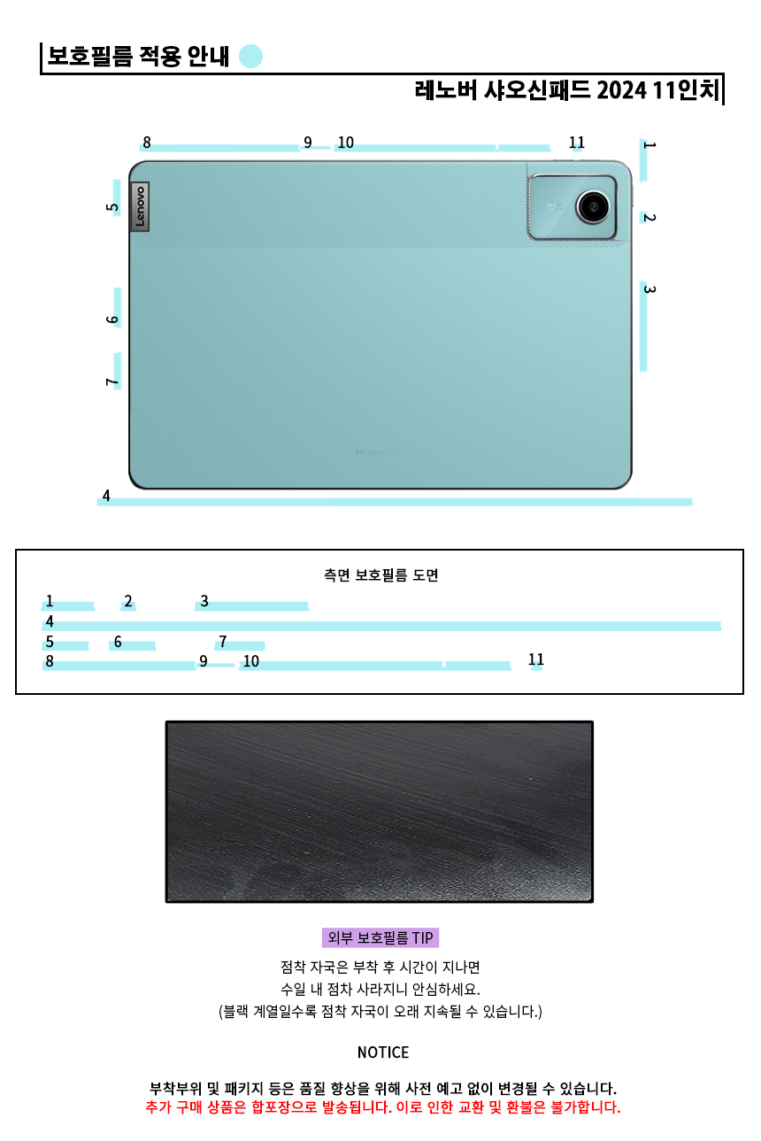 레노버 샤오신 패드 2024 11인치 측면 후면 외부 보호필름 각1매