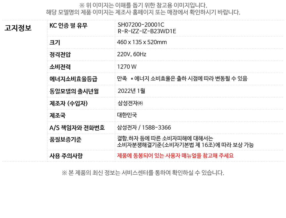 제품 이미지 및 특장점 등에는 광고적 표현이 포함되어 실제 제품과 차이가 있을 수 있으며 제품 외관, 에너지 효율 등급, 스펙 등은 제품 개량을 위해 사전 예고없이 변경 될 수 있습니다.