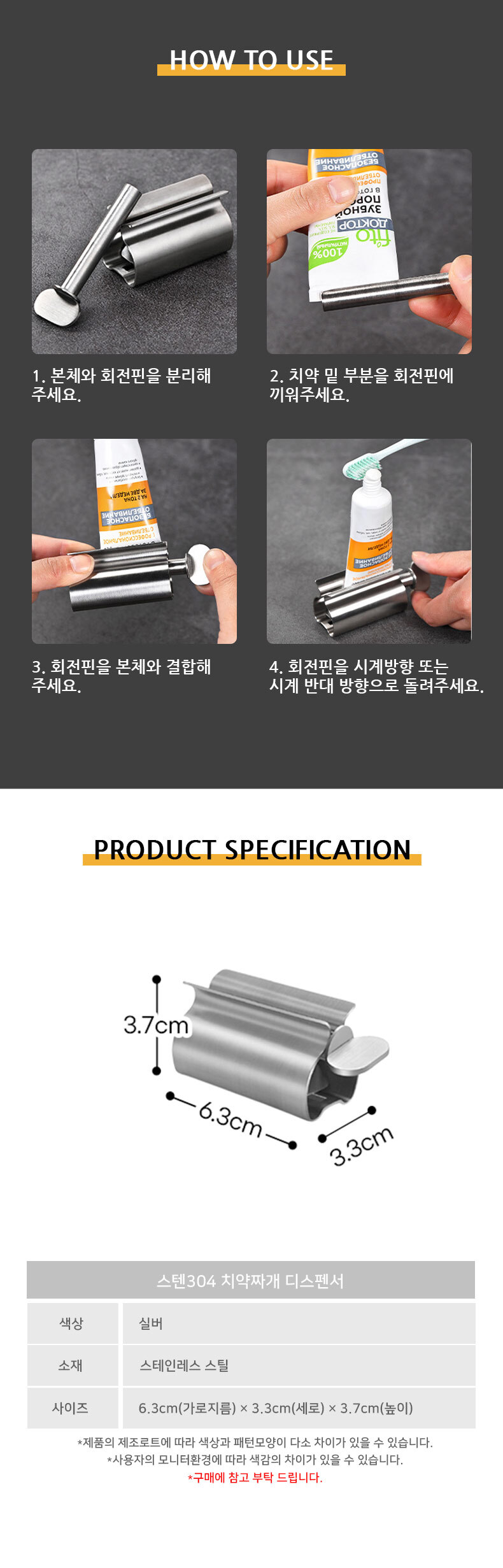상품명:스텐304 치약짜개 디스펜서 물감 핸드크림 연고 짜개