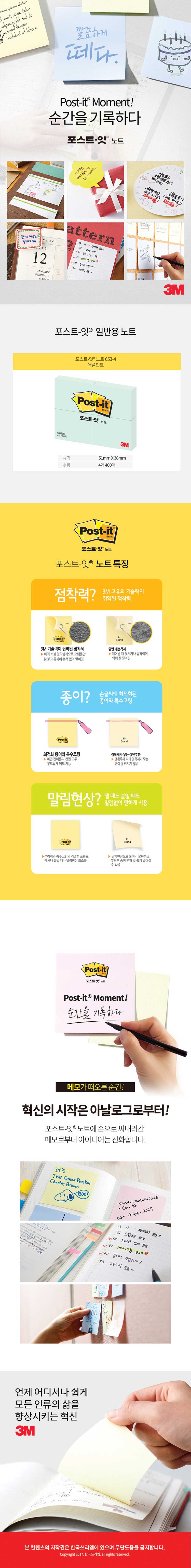 상품명:3M 포스트 잇 노트 M 애플민트 1p 접착식 메모장 노트