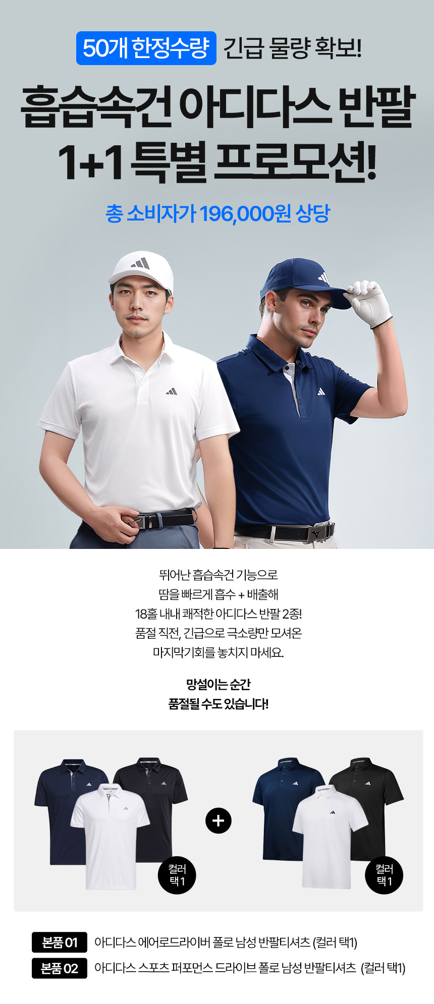 [2장 1세트] [전시상품] 아디다스코리아 드라이버 폴로 남성 반팔티셔츠 2종