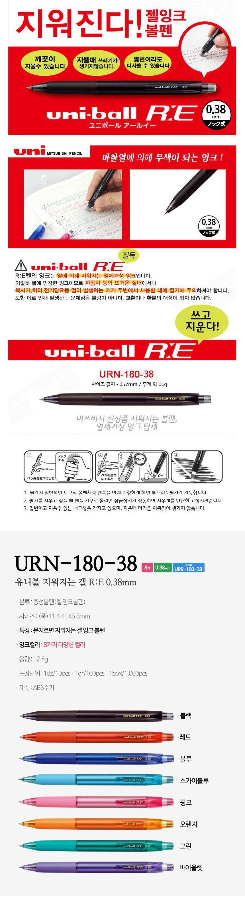 상품명:유니볼 잉크식 젤펜 0.38mm 10개 세트 1P 볼펜 필기