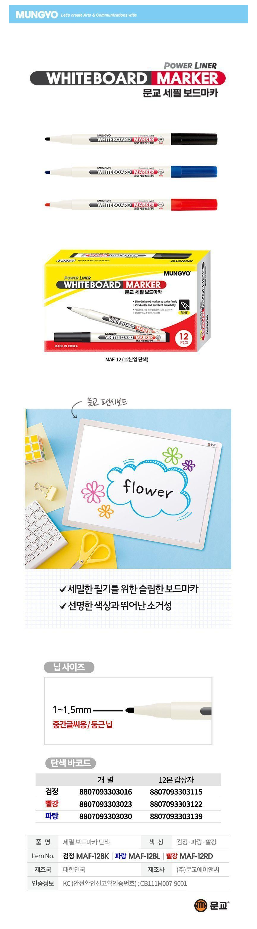 상품명:세필 보드마카 12개 세트 3P 학교 학원 필기 색깔펜