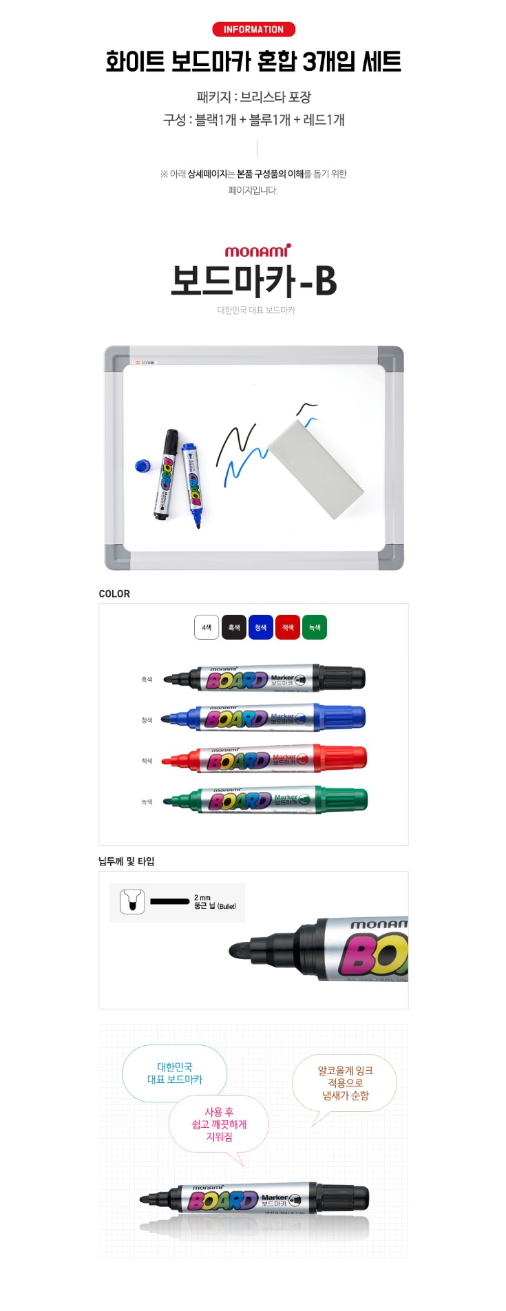 상품명:보드마카 혼합 3개입 5P 칠판 전용 수성 마커 팬슬