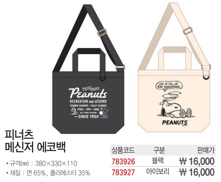 상품명:피너츠 에코백 블랙 에이치엠플러스