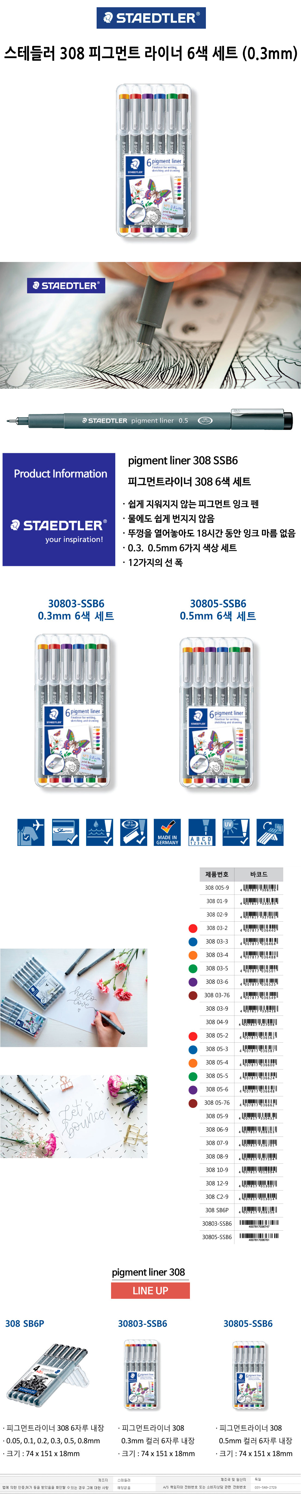 상품명:스테들러 308 피그먼트 라이너 펜 6색세트 0.3mm