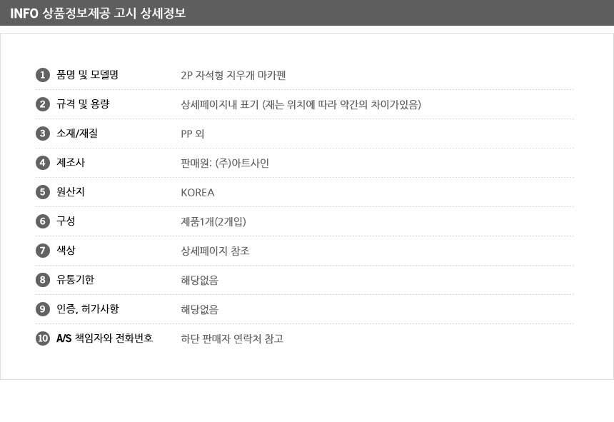 전자상거래 등에서의 상품정보제공 고시에 따라 작성되었습니다.