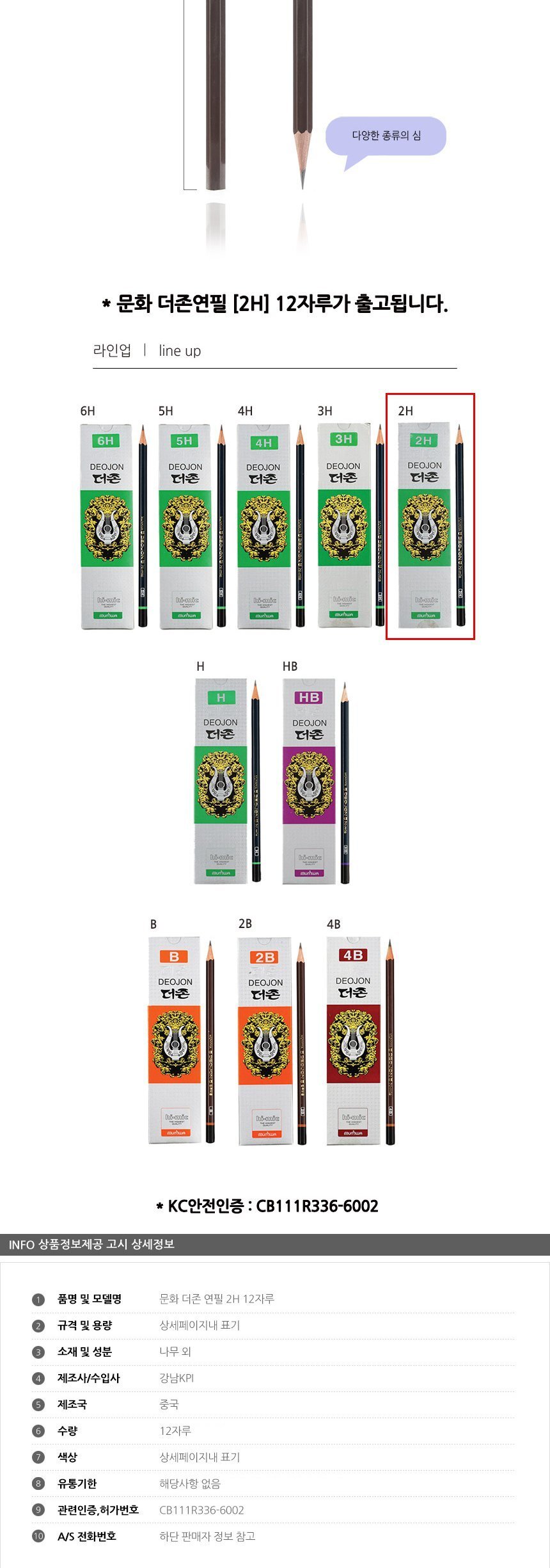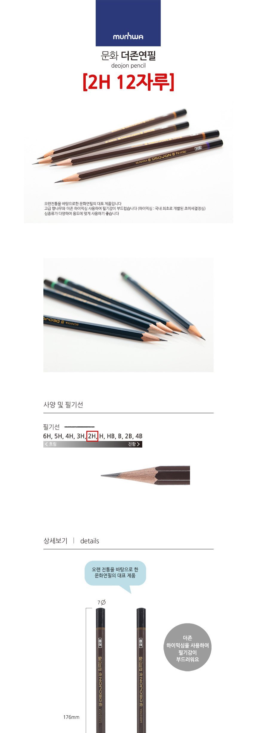 상품명:문화 더존 연필 2H 12개입 미술용 학습용