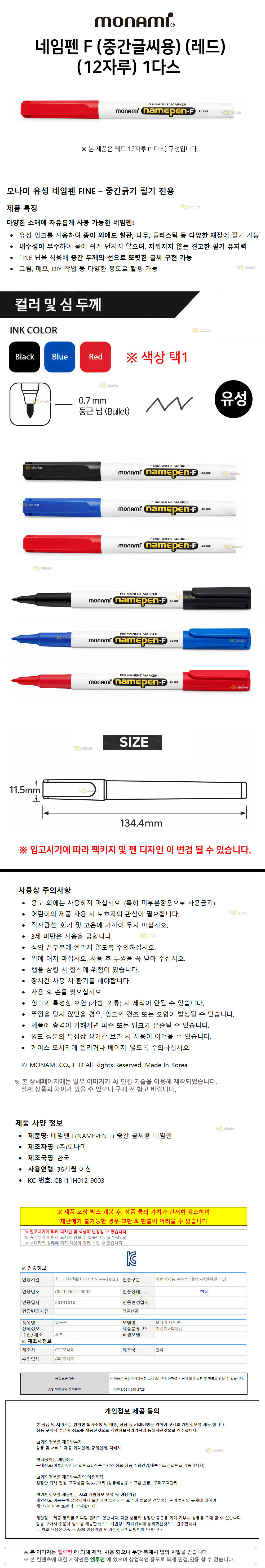 상품명:네임펜 중간 12개 레드 싸인펜 드로잉 사무용품