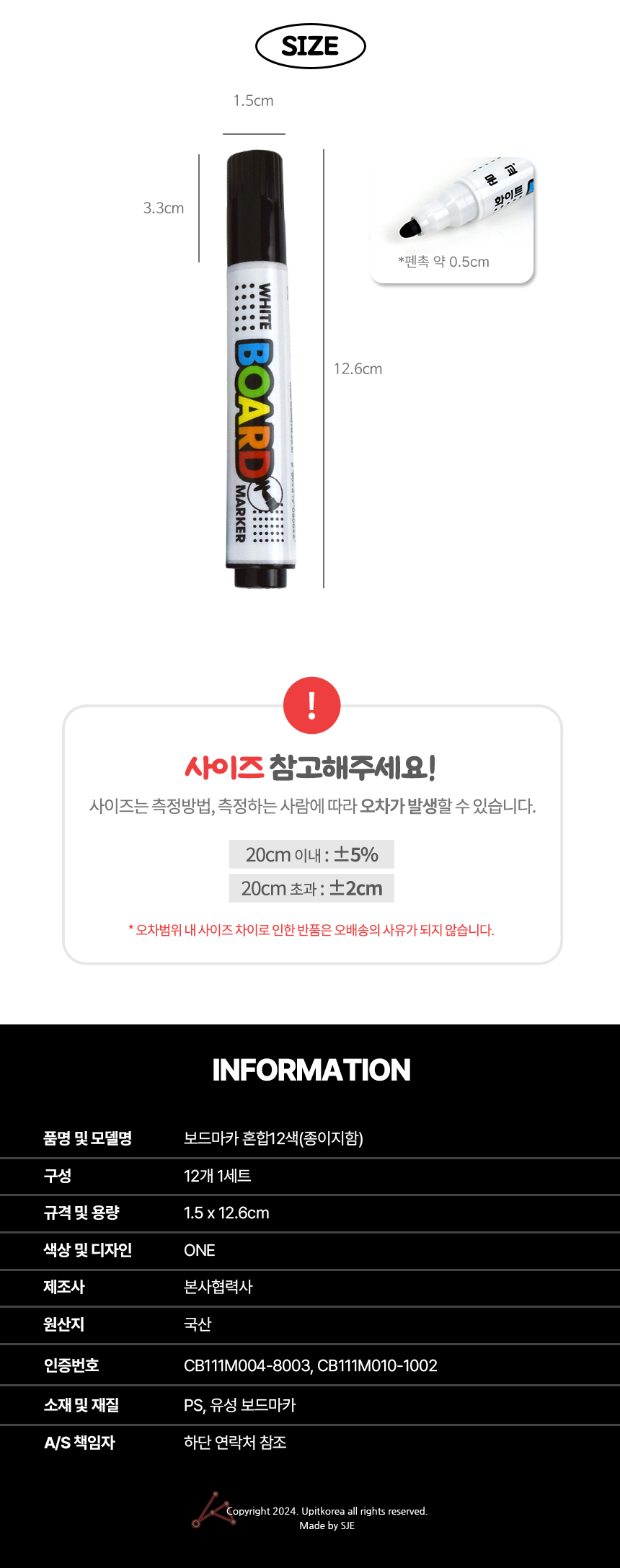 상품명:학교 강의실 화이트보드 보드마카 혼합12색 세트