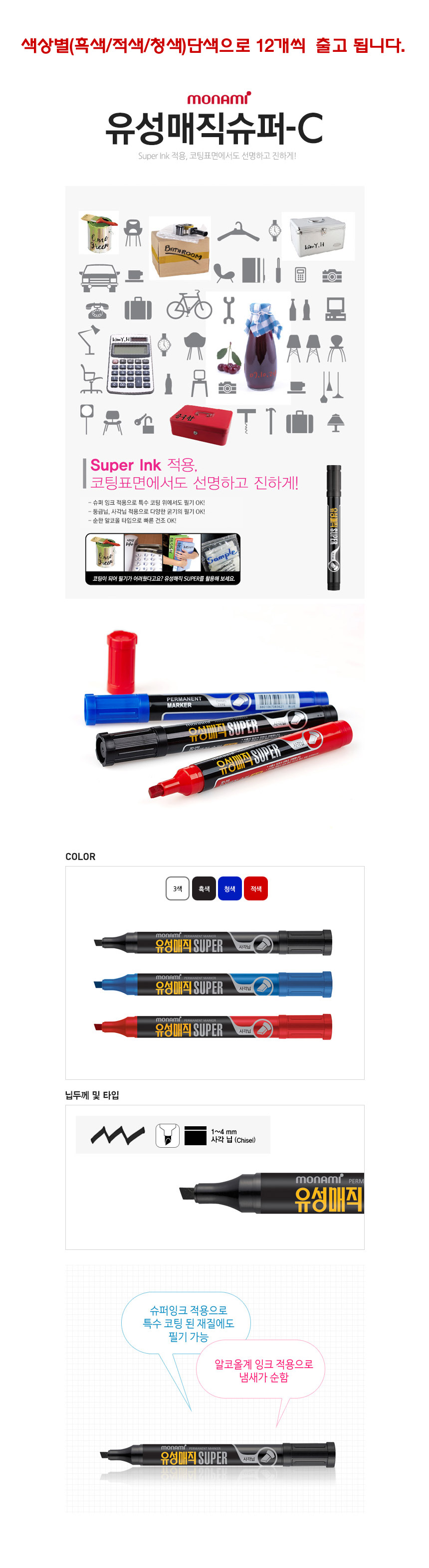 상품명:8400 유성매직 슈퍼 12개입 모나미 유성펜 매직펜