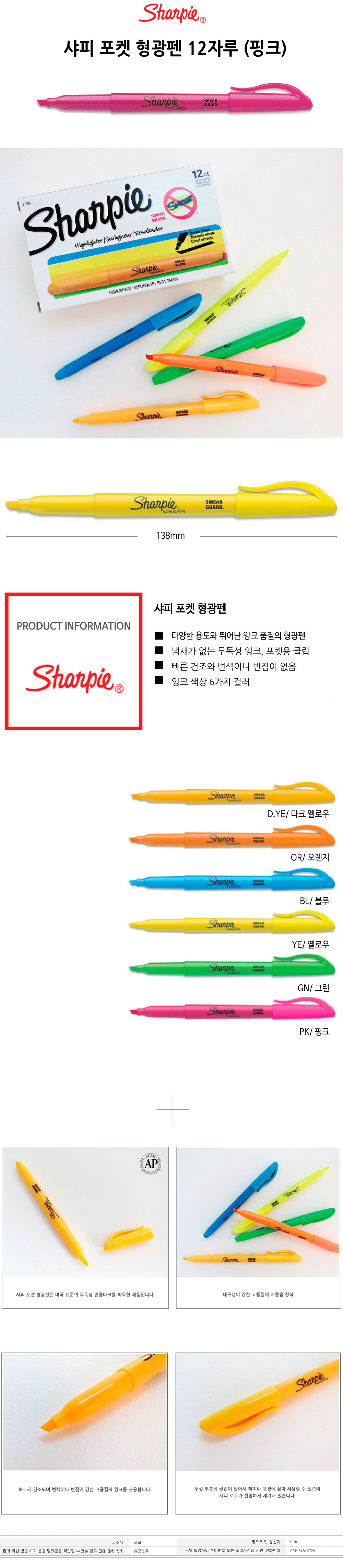 상품명:샤피 포켓 형광펜 12자루 핑크