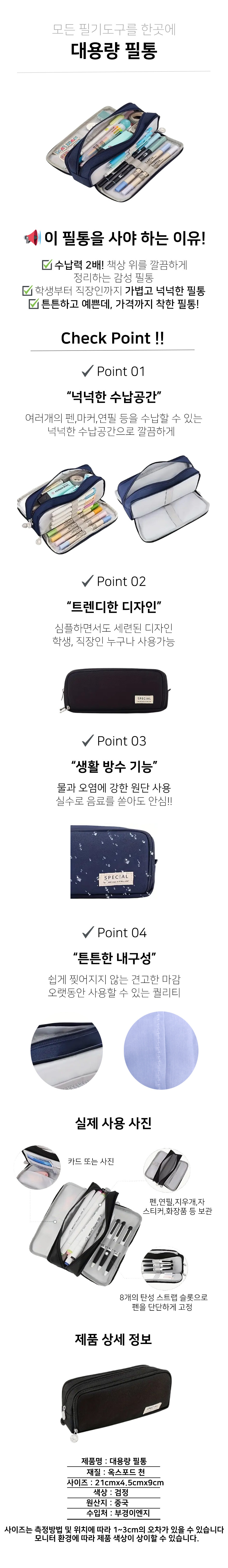 상품명:필통 마카롱 블랙 대용량 학생 패브릭 펼쳐지는 직장