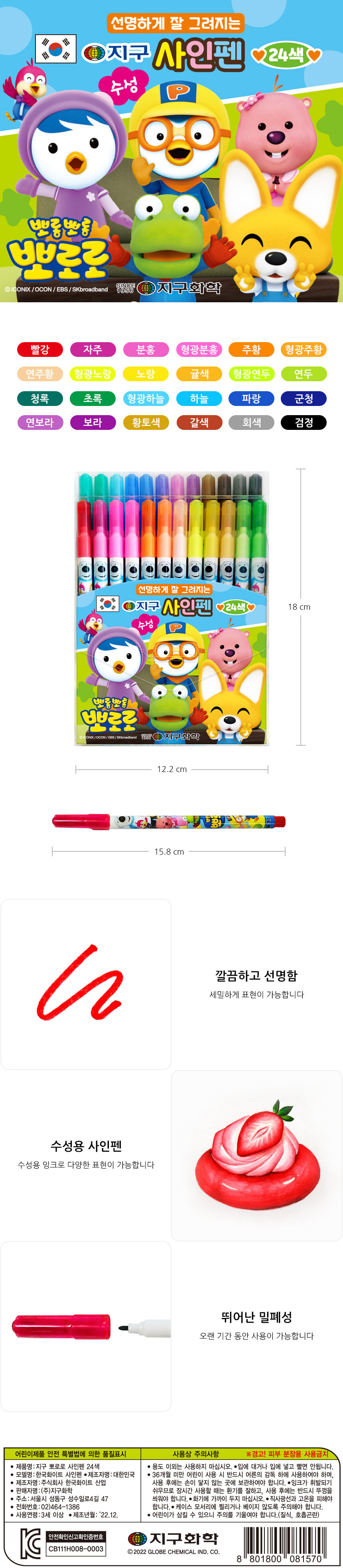 상품명:지구화학 뽀로로 사인펜 24색 싸인펜 1개