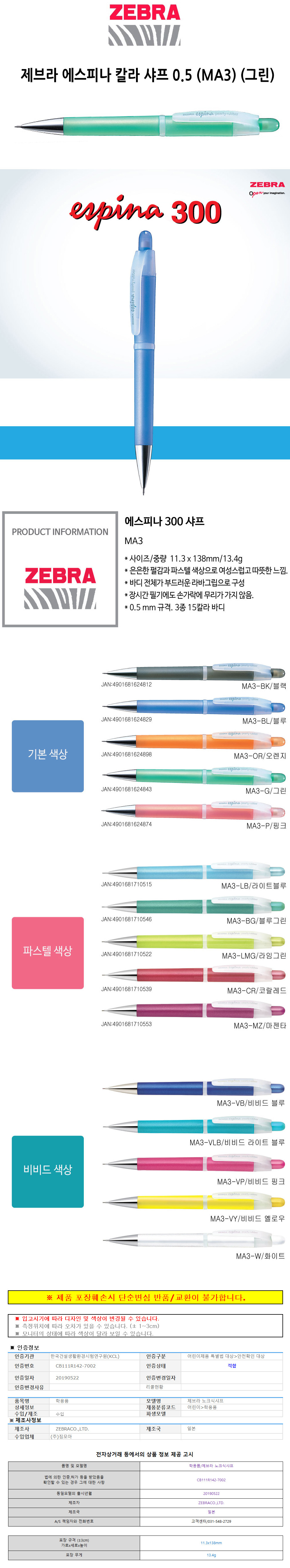 제브라 에스피나 칼라 샤프 0.5 MA3 그린
