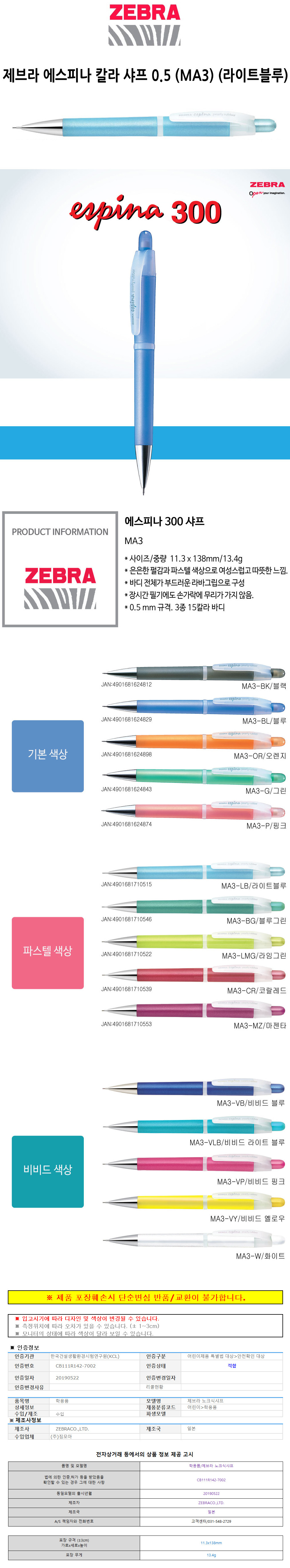 제브라 에스피나 칼라 샤프 0.5 MA3 라이트블루