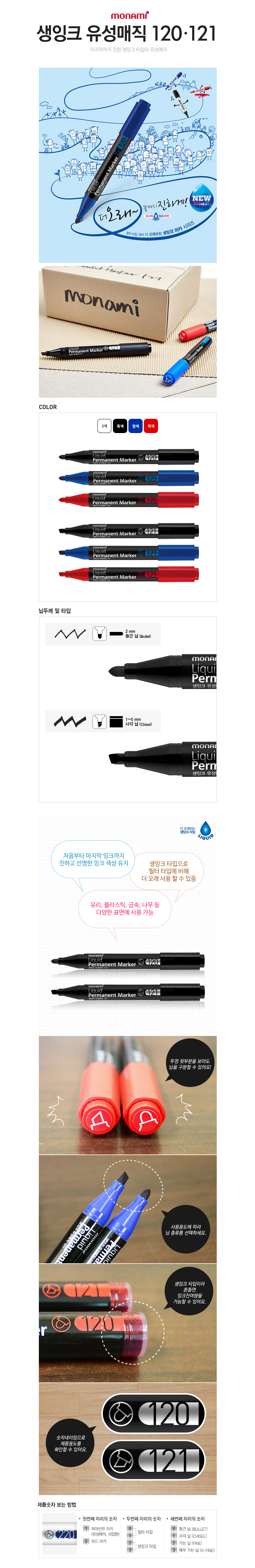상품명:모나미 생잉크 유성매직120 둥근닙 적색 12개