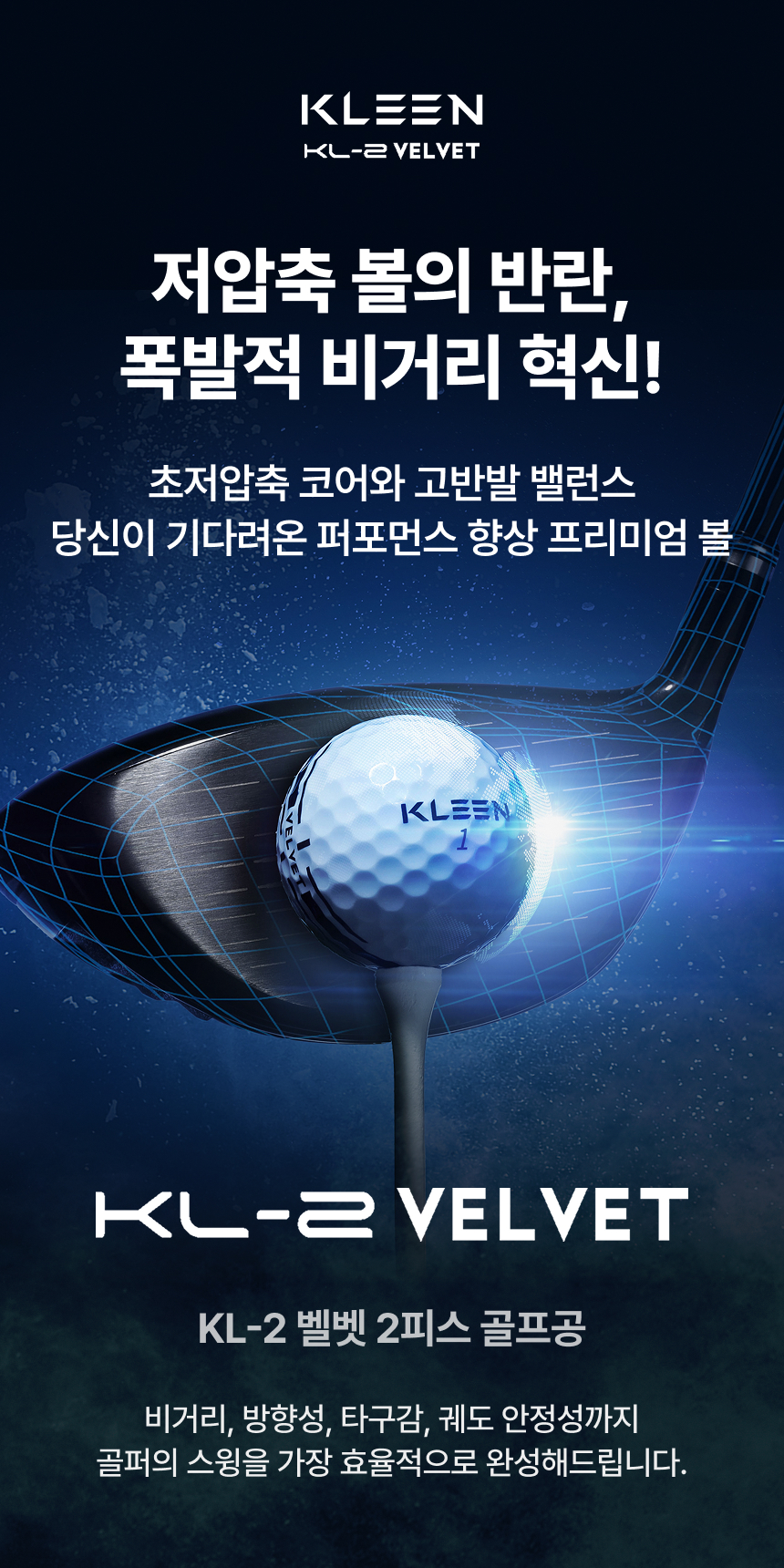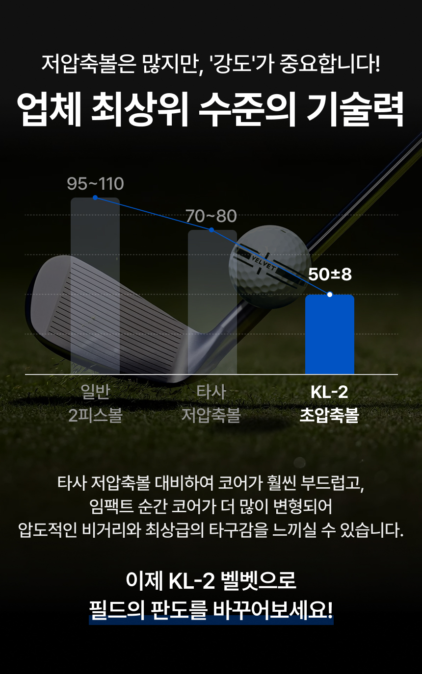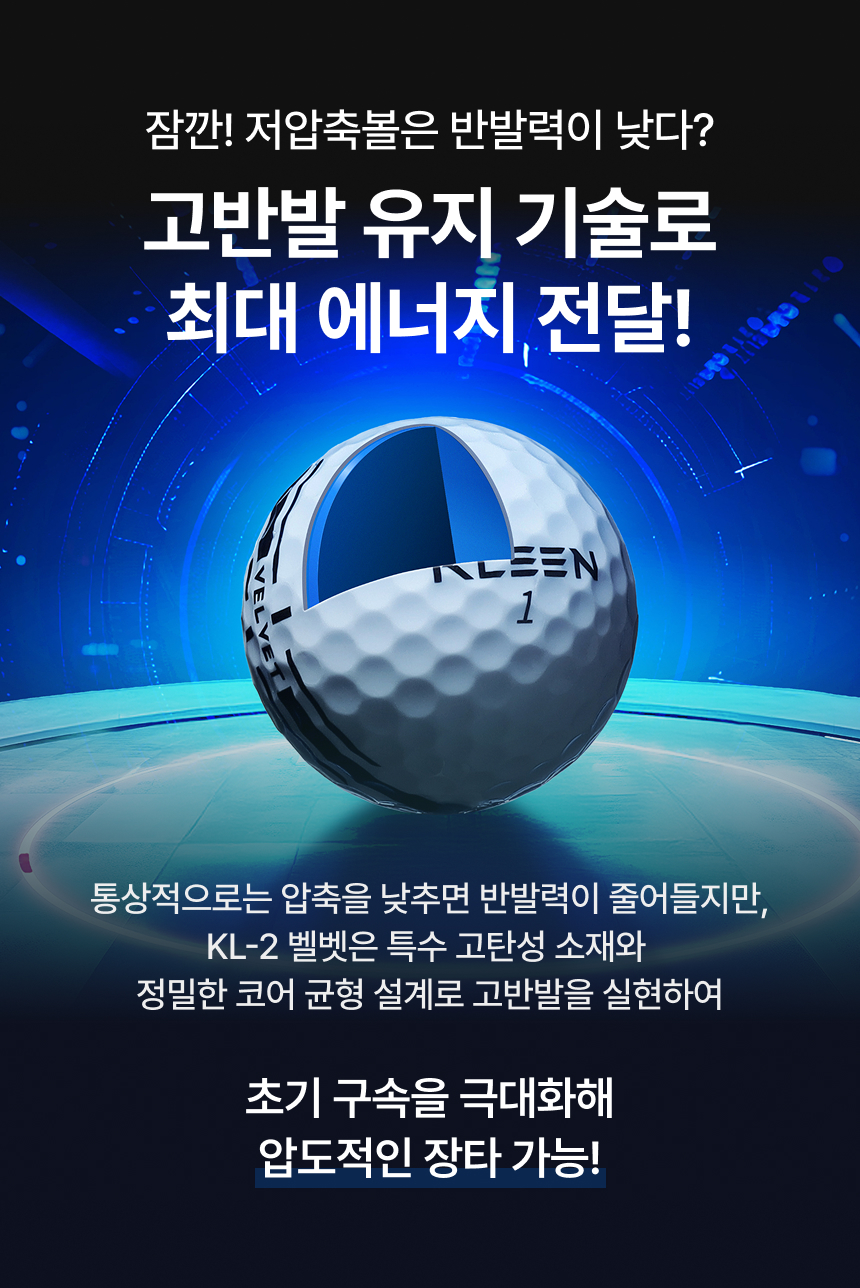 KLEEN 클린 벨벳 저압축 고반발 비거리 2피스 골프공 장타 고성능 골프볼