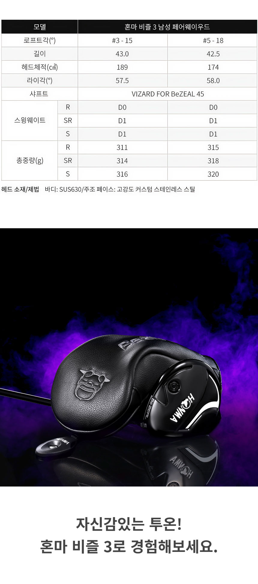 혼마 비즐 BeZEAL3 남성 카본 VIZARD 페어웨이 우드 + 미즈노 클럽케이스(사은품KS)