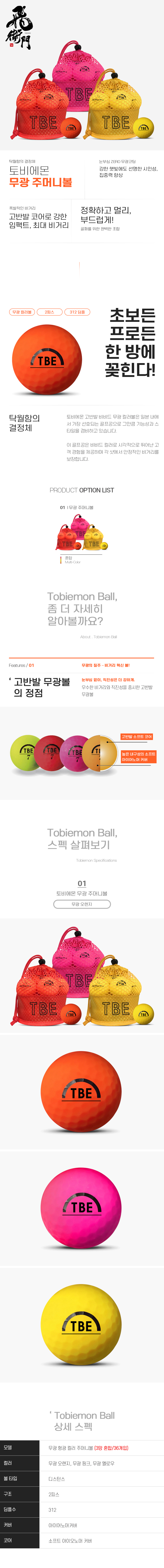 토비에몬 무광 형광 주머니 골프볼[남여공용][3망 혼합][2피스/36알]