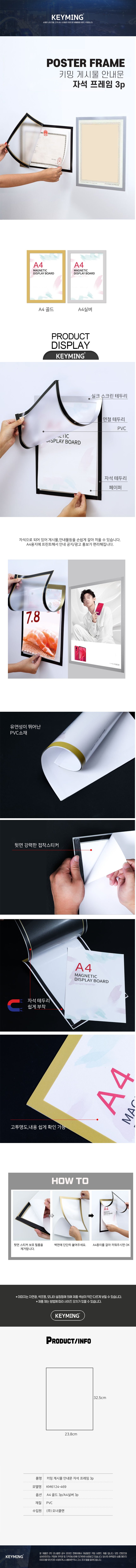 키밍 게시물 안내문 자석 프레임 3p 꽂이판 알림판