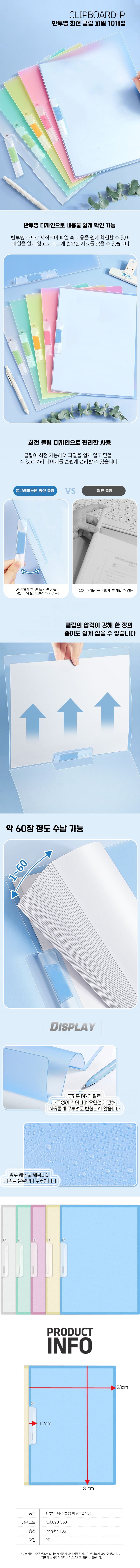 상품명:반투명 회전 클립 파일 케이스 바인더 팔일함 10개입