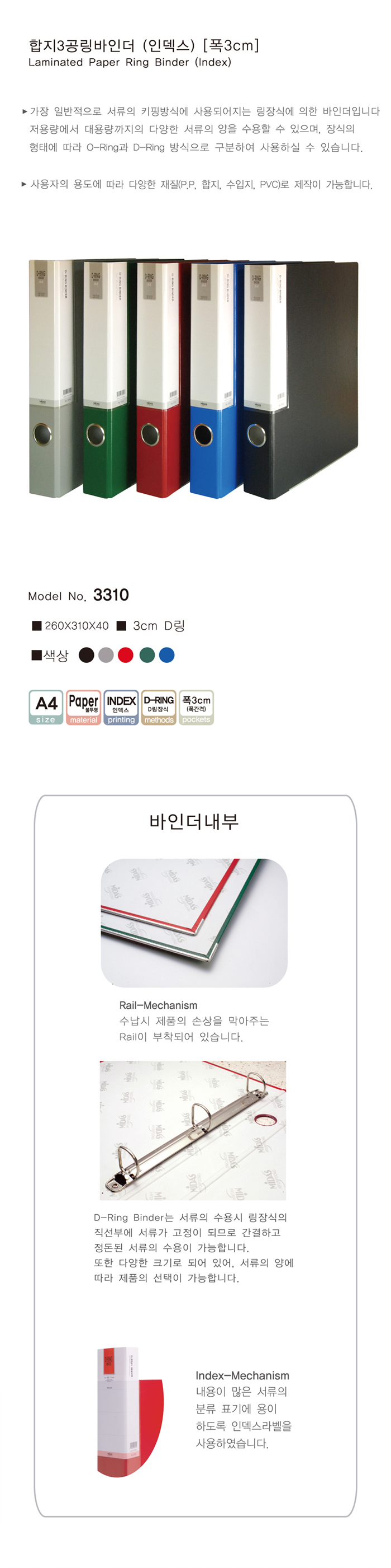 상품명:합지 3공D링 바인더 A4 3cm 회색 1P 문서 서류 속지