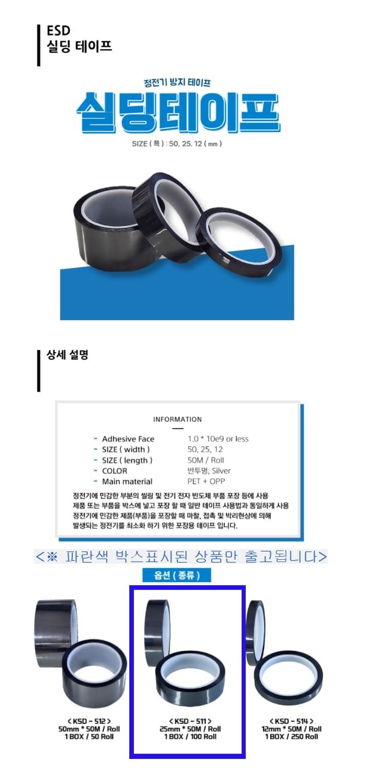 상품명:ESD 절연 테이프 정전기 방지 전기 테이프 25mmX50m