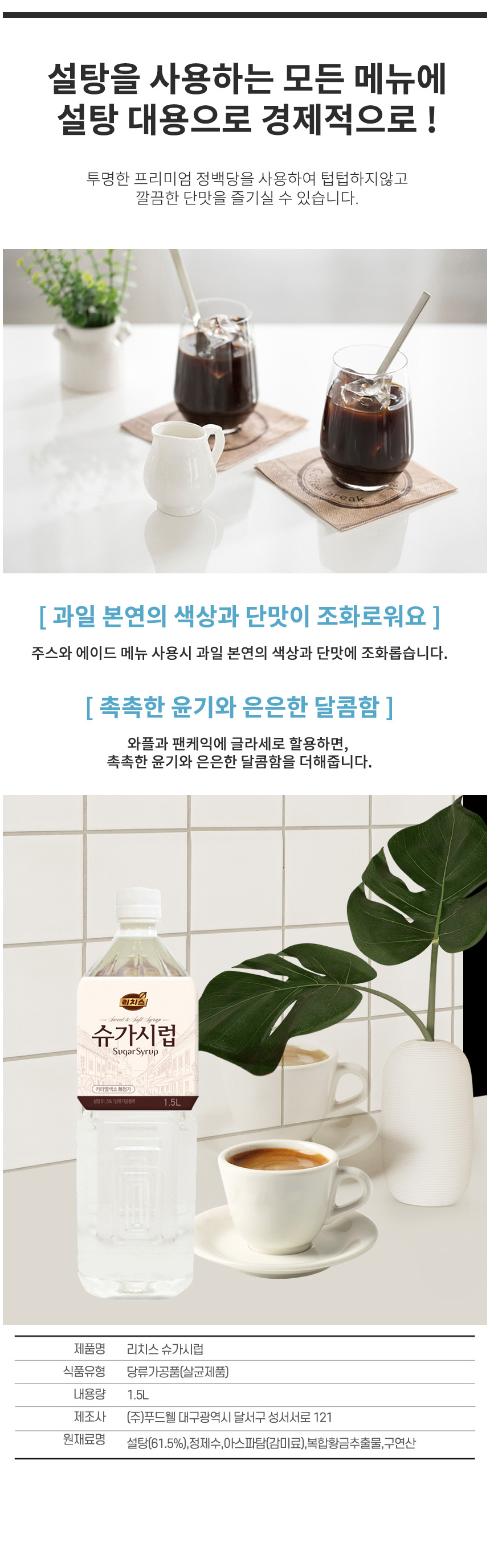 동서 리치스 슈가시럽 1.5L 카페시럽