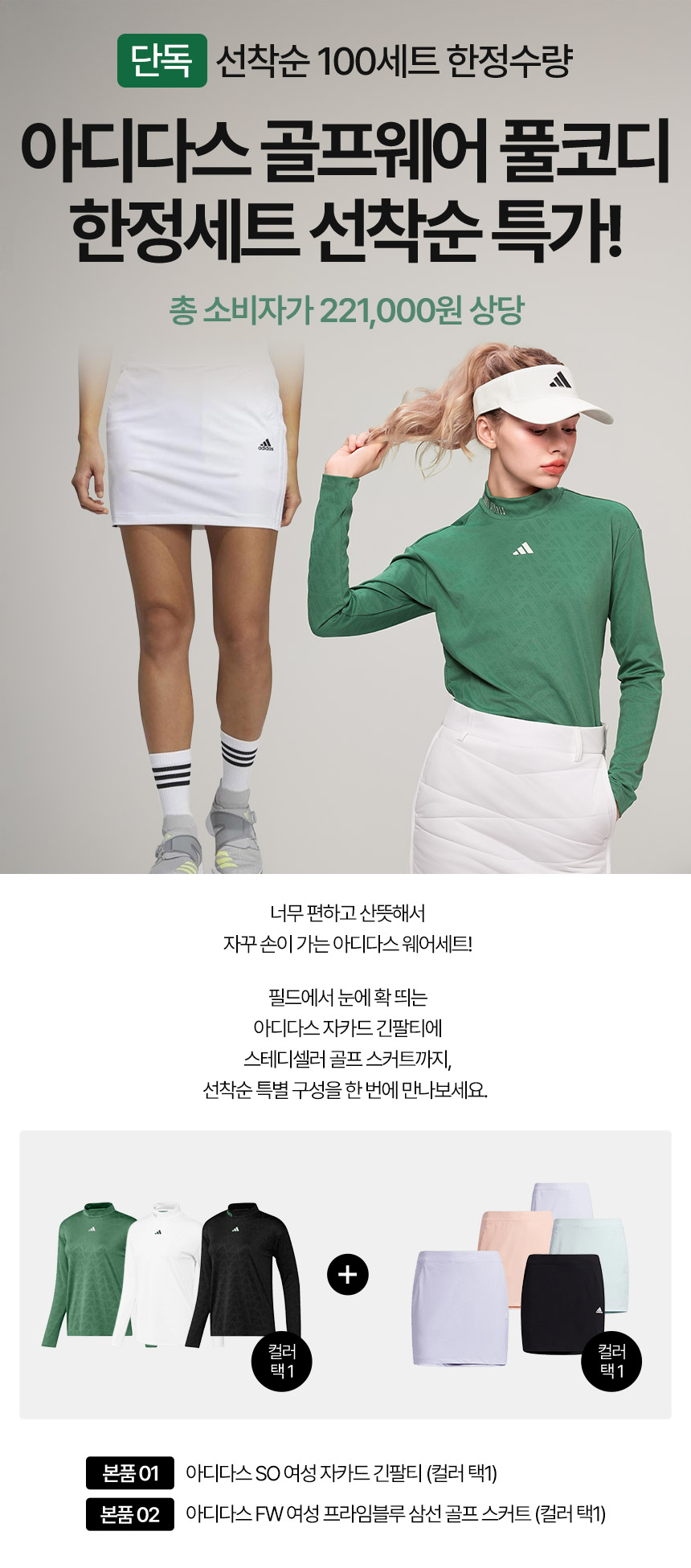 아디다스 SO 여성 자카드 긴팔티셔츠+여성 프라임블루 삼선 골프 스커트 세트